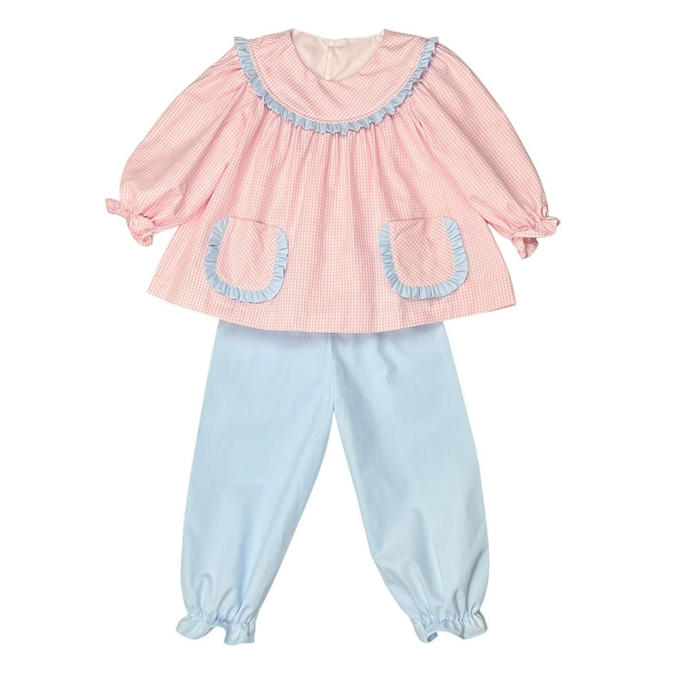 Lullaby Set Caroline Legging Set Blue Cord and Pink 18m-4