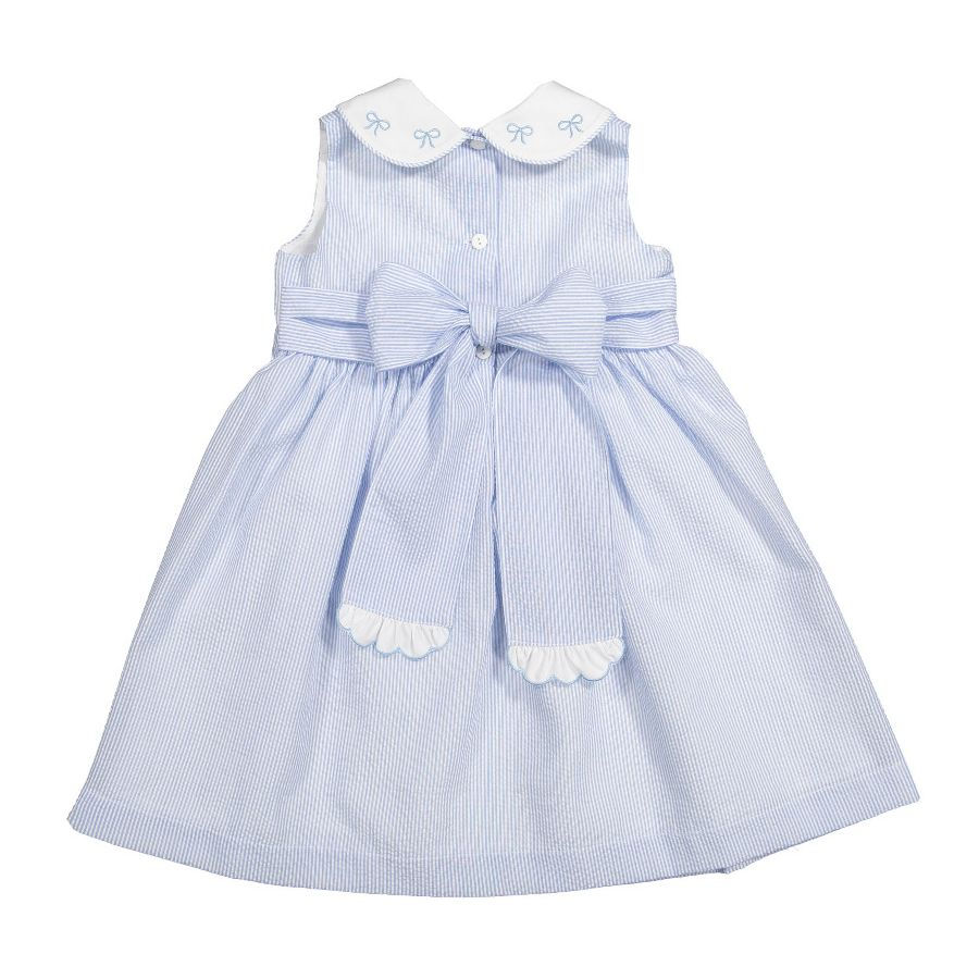 Sal & Pimenta Blue Seersucker Bow Bubble 6 mo-3t